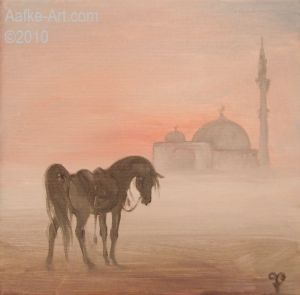2-february-7 arab landscape mosque horse painting arabian