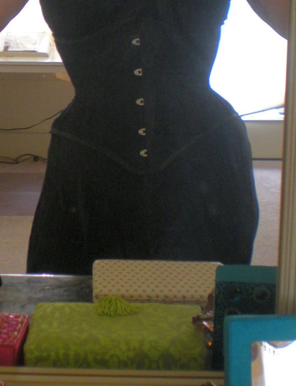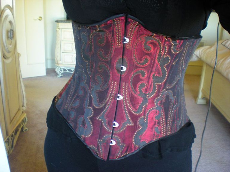 And then my super hourglass waisted evening underbust! Made of Chinese brocade, and the busk has little swarovski crystals on the knobs… But the photography wasn’t good enough to capture them.