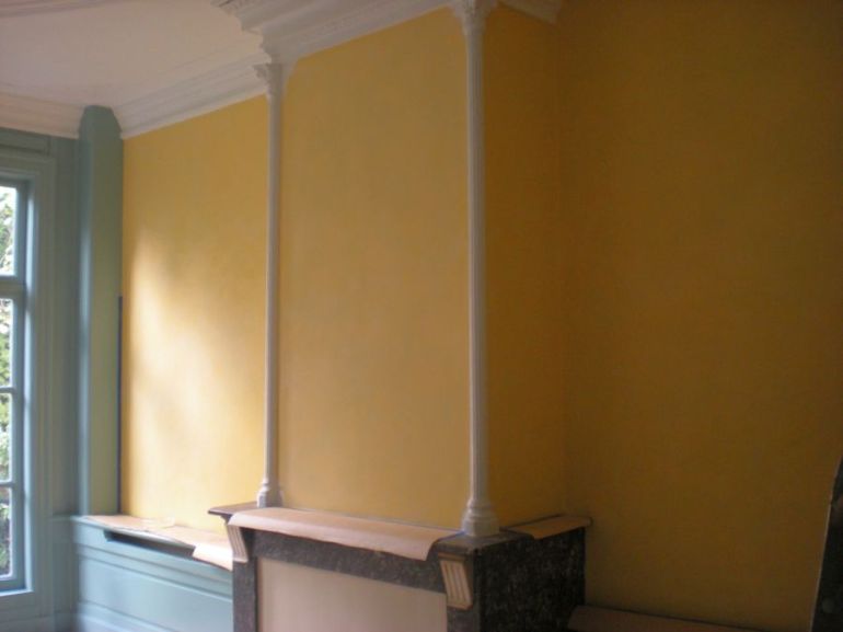 I have been spending a lot of time in Amsterdam, off and on, and have been working on this very large wall painting in the library of an 18th century canal house.
