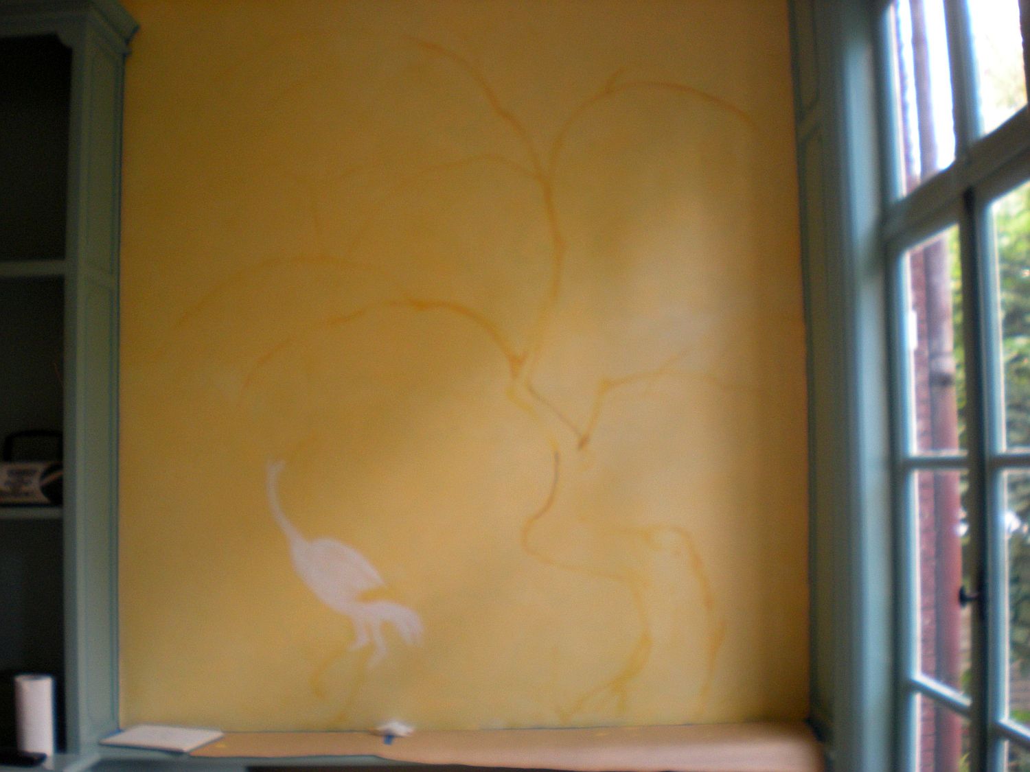 The sketch. I paint directly on thge wall, I don’t use a magnifier which projects a drawing on the wall. This is of course more difficult, but it is also a lot more spontaneous.