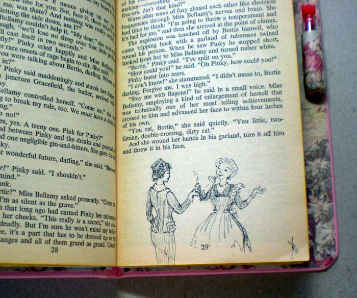 I have been having some fun! I love the members of Basenotes, the perfume forum I visit almost every day. I wanted to do something nice for my friends on Base notes so I have been re-binding and illustrating two old pocket books. It’s a great suspense novel by Ngaio Marsh: ”False Scent”. There is of course a theme of a very special perfume which runs through it, and I have my idea what it would smell like, and the game is going to be that who-ever guesses it gets one of the books.