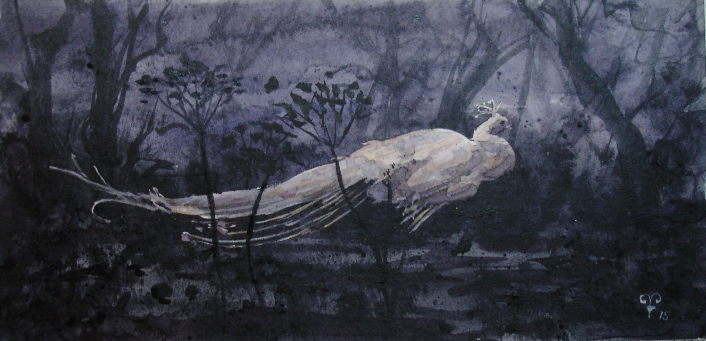 So here it is: ”The lonely moonlight walk”, aquarelle on paper, 4” x 8”