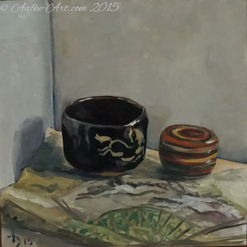 This was fun to paint, I wanted to show spontaneity, rather than an obsessive focus on perfection. Although the raku bowl is pretty spot on!